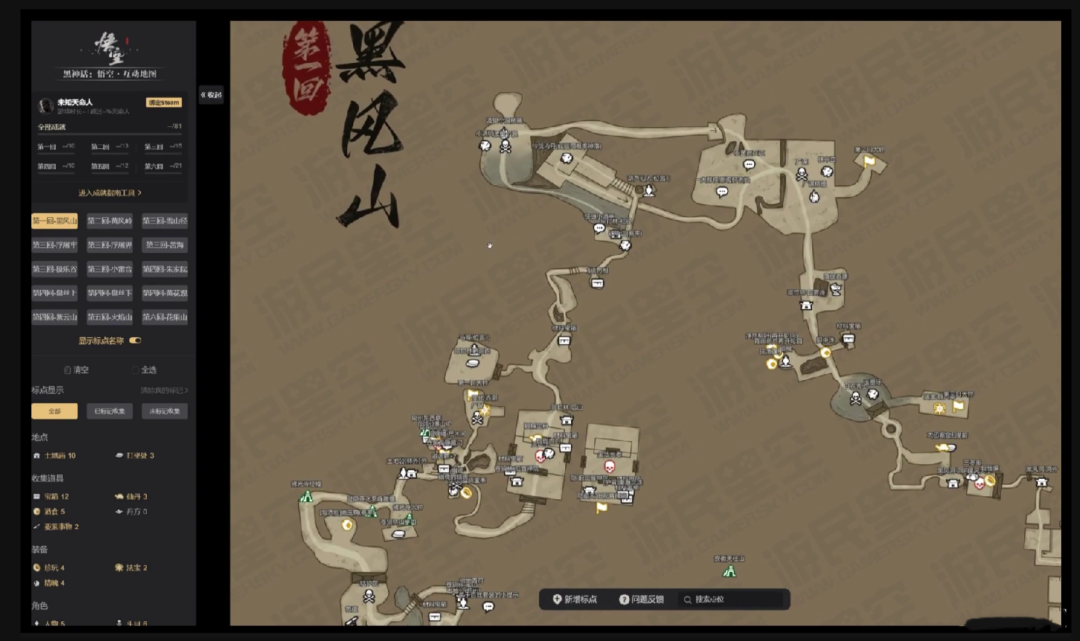 我们找到了游民星空做的线上地图为例,让大家了解游戏场景中的各种元素,如怪物分布、宝藏位置、BOSS与隐藏关卡位置、重要的收集品等等。