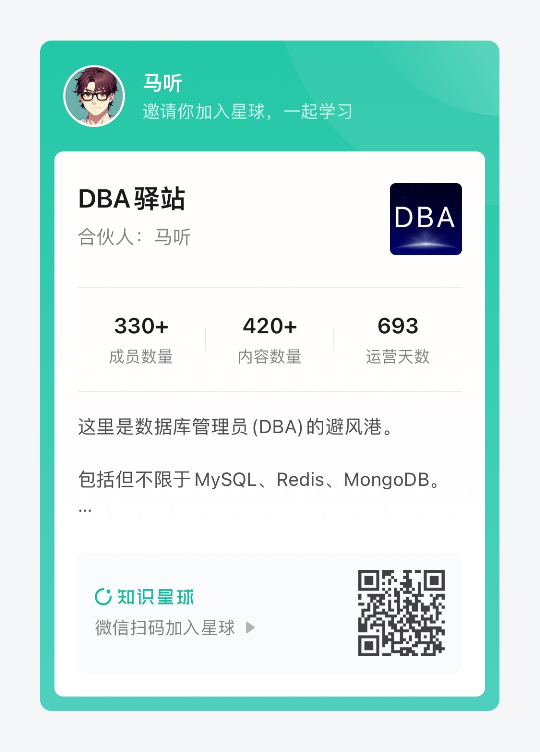 经过690多天的运营和330多位DBA的验证,我们创建的【DBA驿站】知识星球已经成为不少数据库专业人士的成长港湾。
