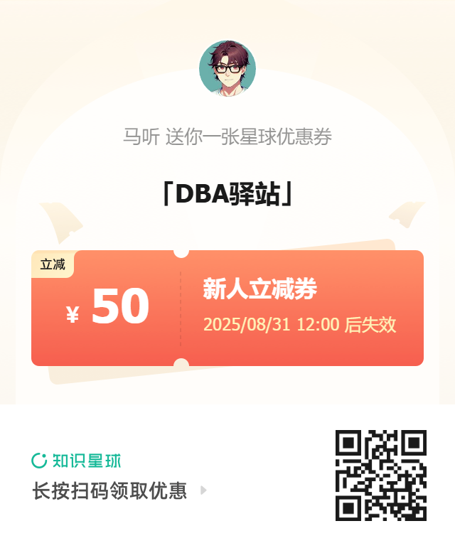 感兴趣的可以领取下方优惠券加入【DBA驿站】星球,券后98¥。
