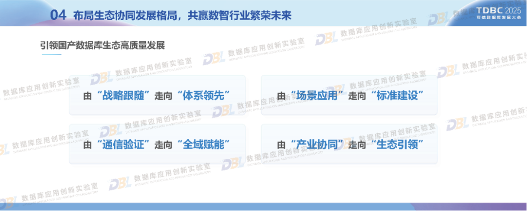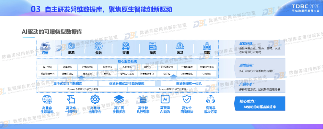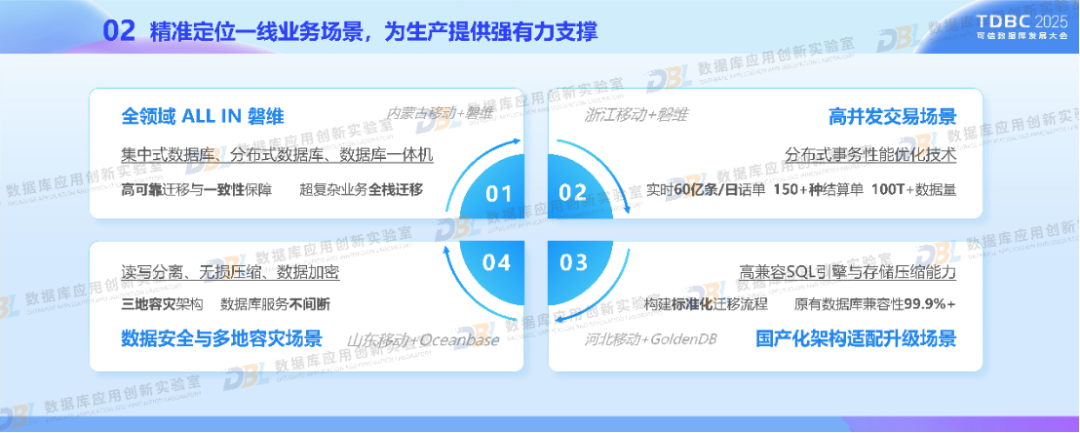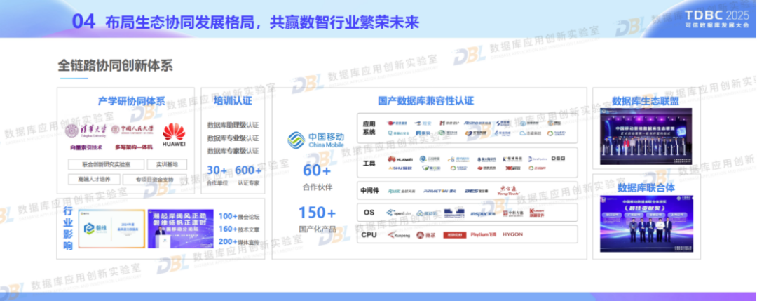 陈国指出,人工智能与数据深度融合,正重塑生产力边界,对数据库提出了智能处理、原生自治、安全可信等全新要求。面对这一趋势,中国移动主动作为,面向大规模、高并发、复杂场景,自主研发磐维数据库,打造AI驱动的可服务型数据基础设施,深度赋能通信、能源、金融、政务等关键行业核心系统稳定运行。未来,中国移动将加快迈向“标准制定、生态牵引”的战略升级阶段,持续释放央企力量,引领国产数据库走向高质量发展之路。