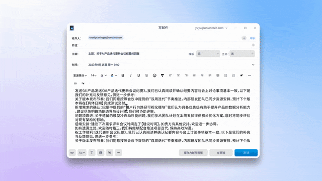 UOS AI 随航的强大之处在于其“全场景适用性”,无论你是在文档编辑器中处理文字、在浏览器中浏览网页,还是在聊天软件中交流信息,只要选中需要处理的文本,UOS AI 随航的工具栏就会即时出现,为你提供丰富的文本处理功能。