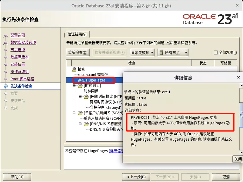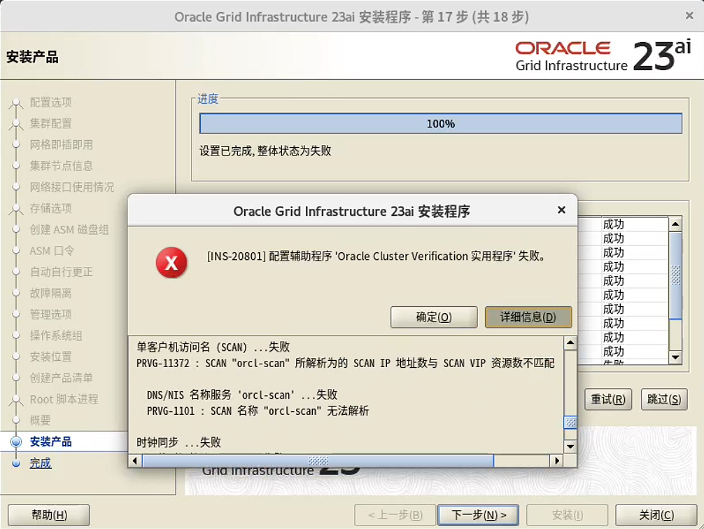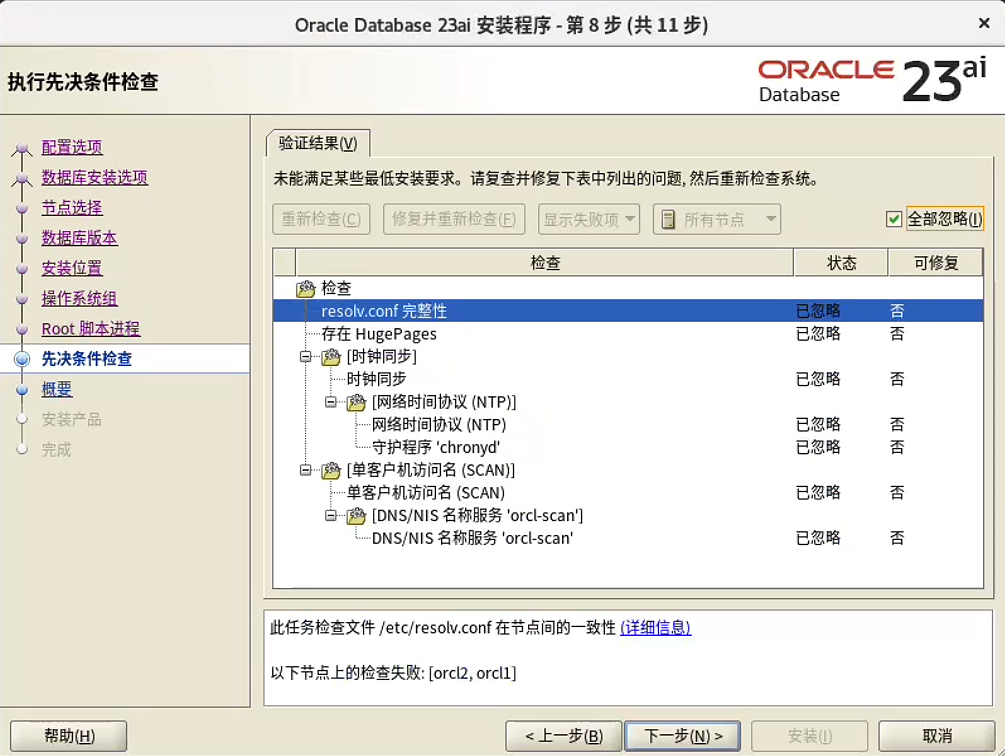 这个报错是因为 SCAN 和 NTP 相关的,可以忽略: