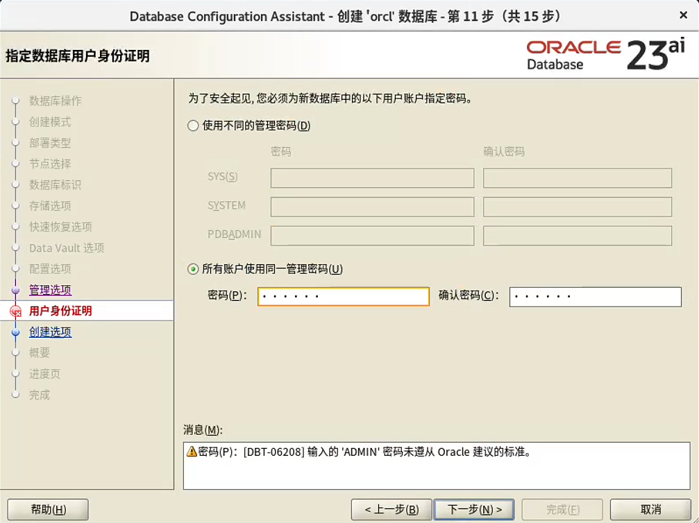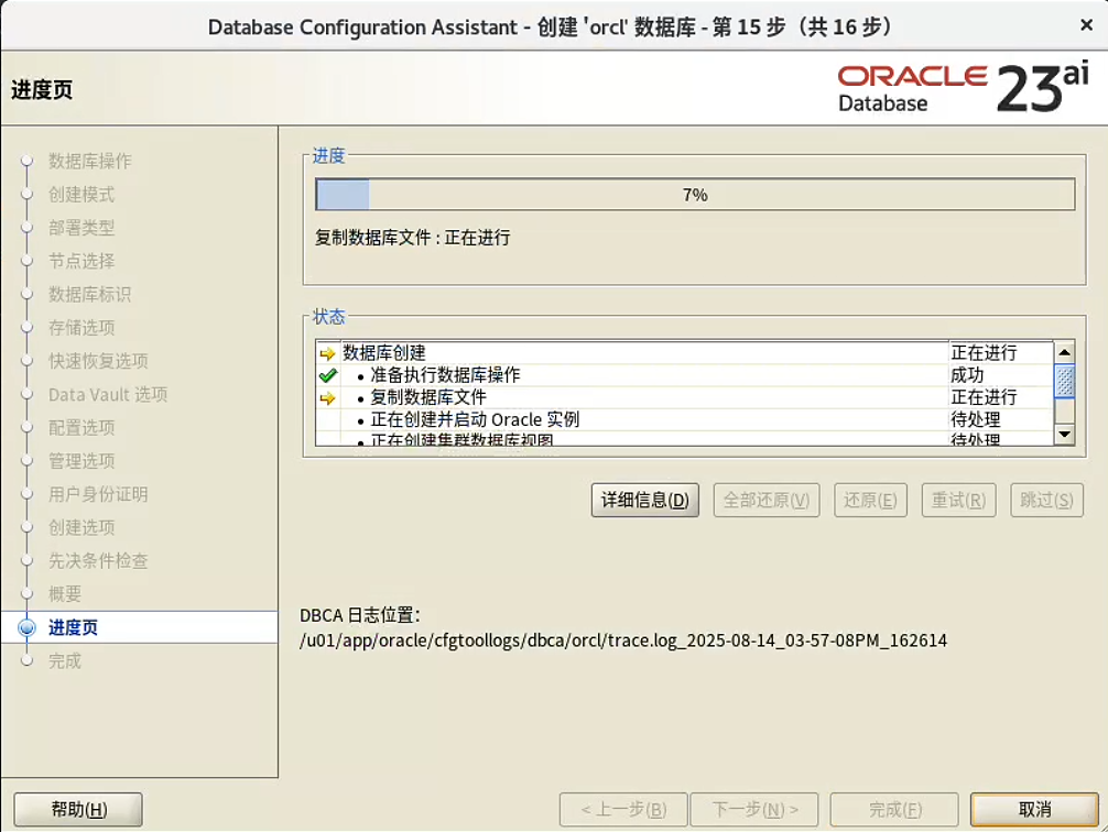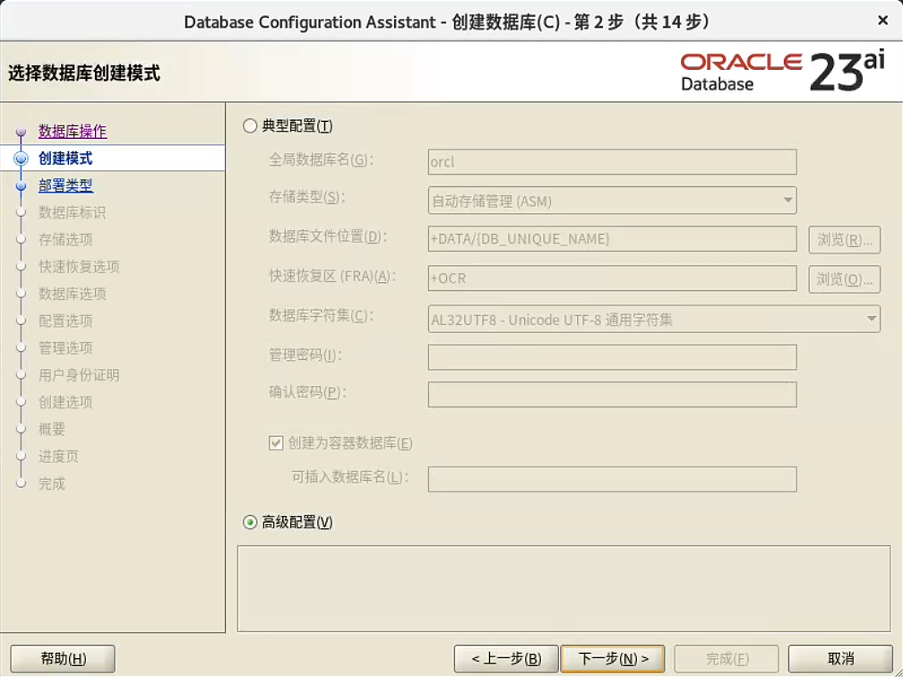 dbca 建库: