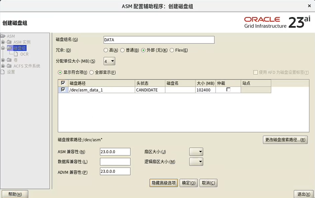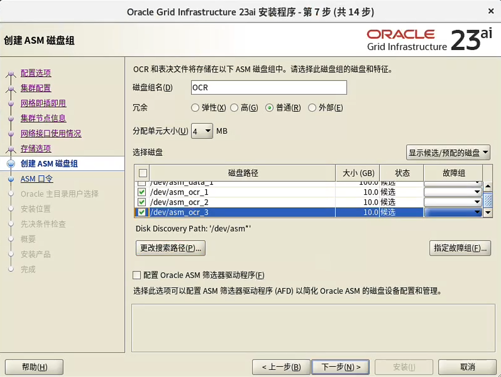 -or NORMAL `# OCR磁盘组冗余度`