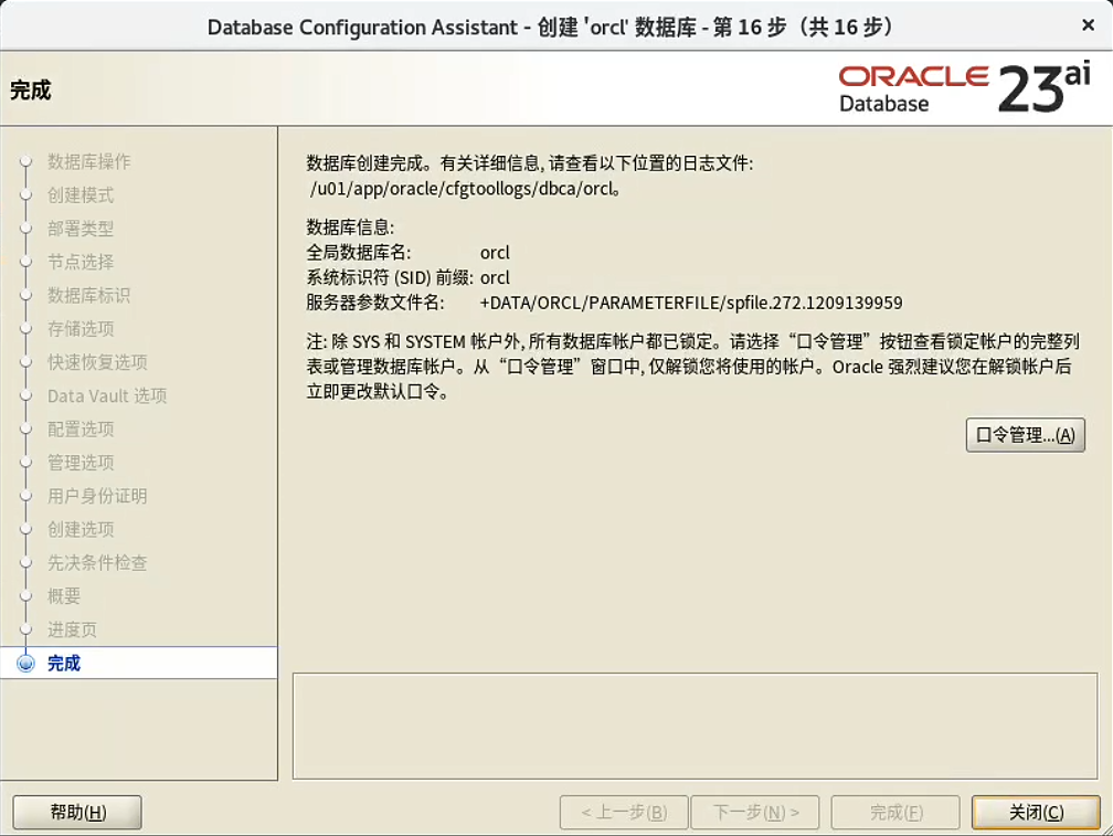 Oracle 软件安装完成。