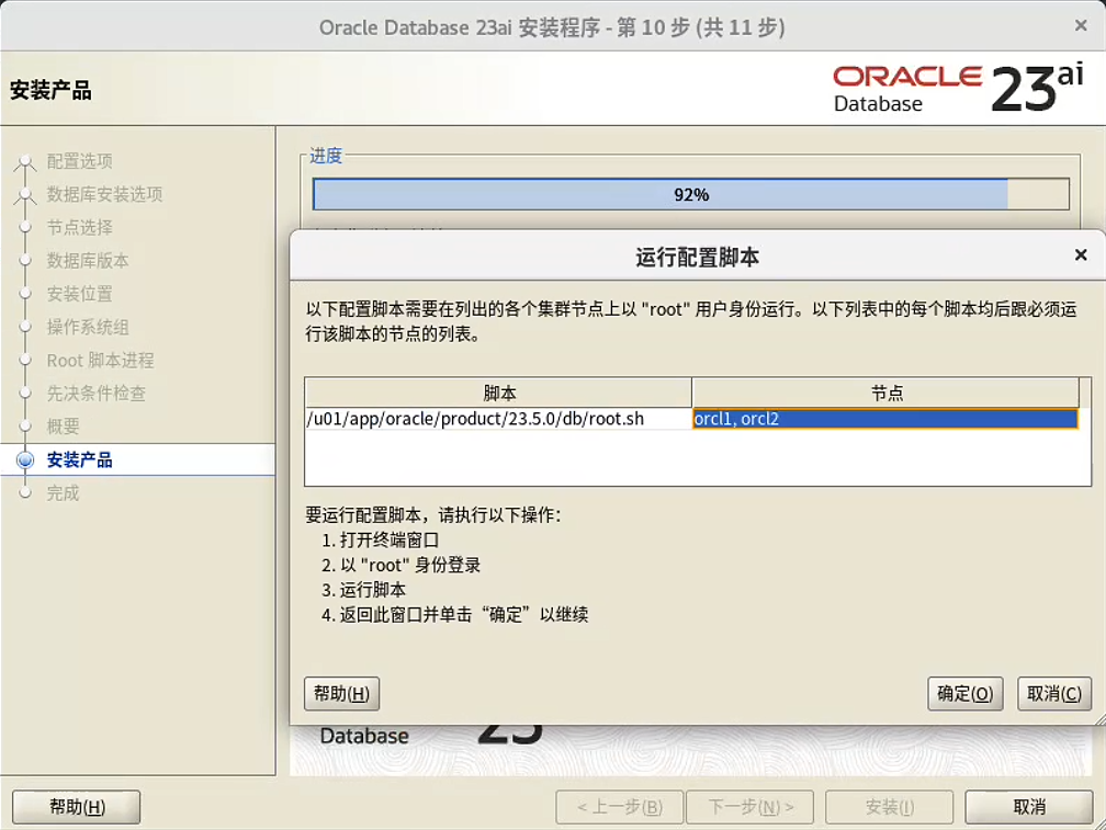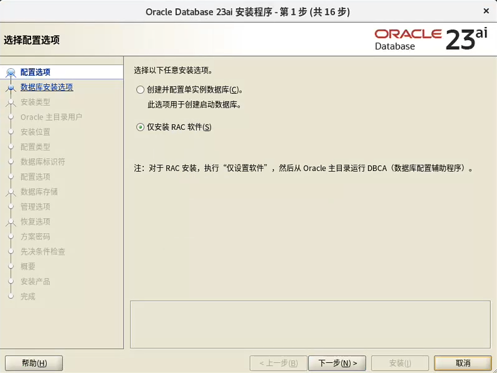 配置完成后,开始手动安装 Gird 和 Oracle 软件。