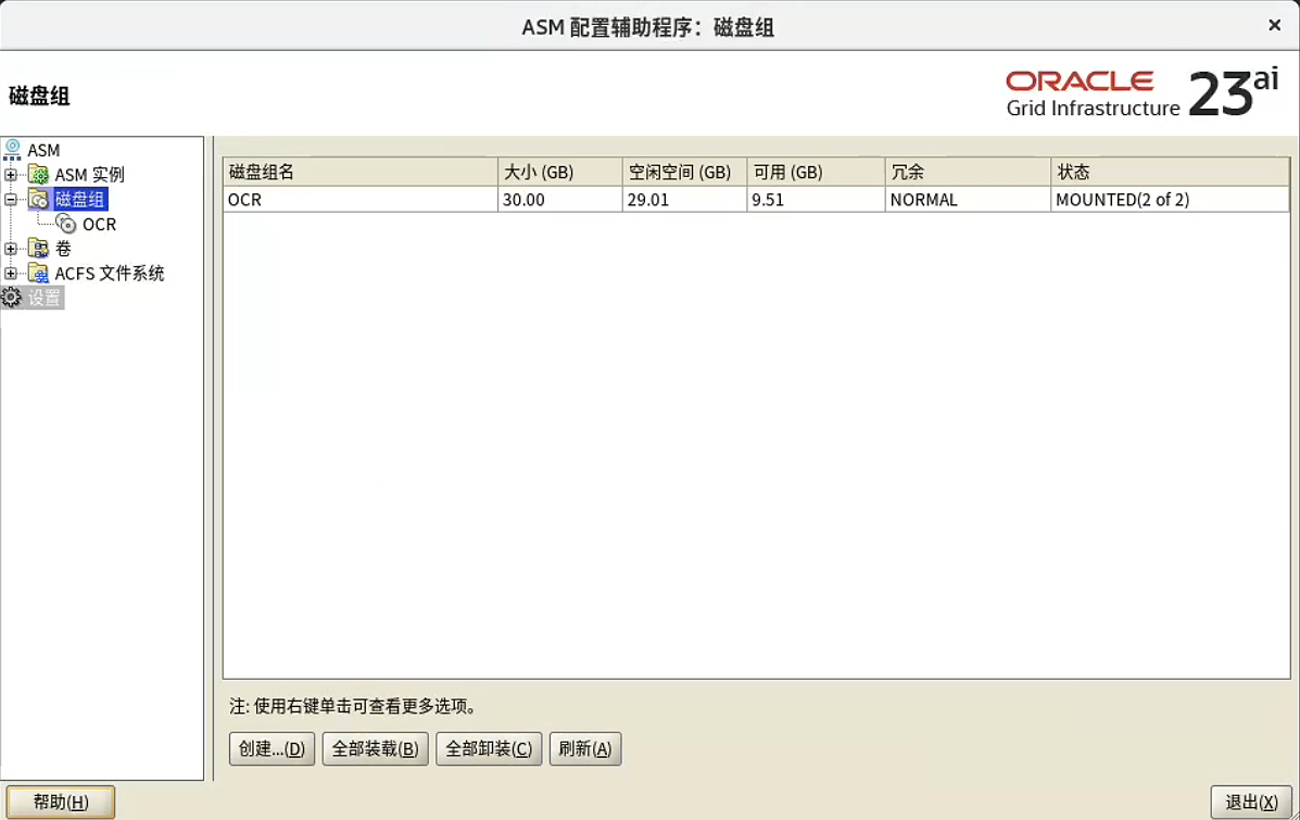 已成功将表决磁盘组替换为 +OCR。