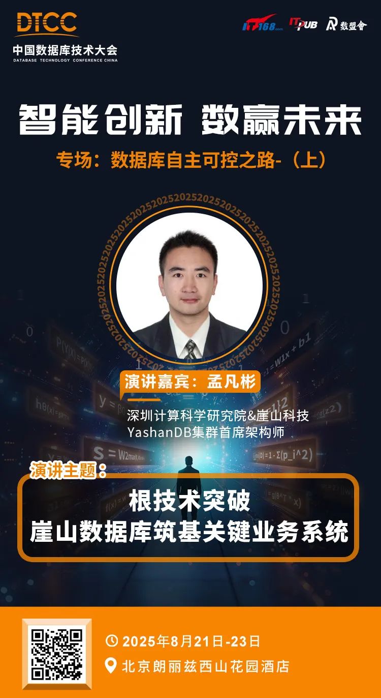 YashanDB集群首席架构师孟凡彬将带来《根技术突破,崖山数据库筑基关键业务系统》主题分享,深度解析崖山数据库如何以自研内核+共享集群架构,实现核心系统1:1替代Oracle!内核级兼容能力、金融级容灾体系、综合成本TCO直降66%,关键业务系统规模化替代的破局时刻已至!锁定专场2,见证破局时刻!