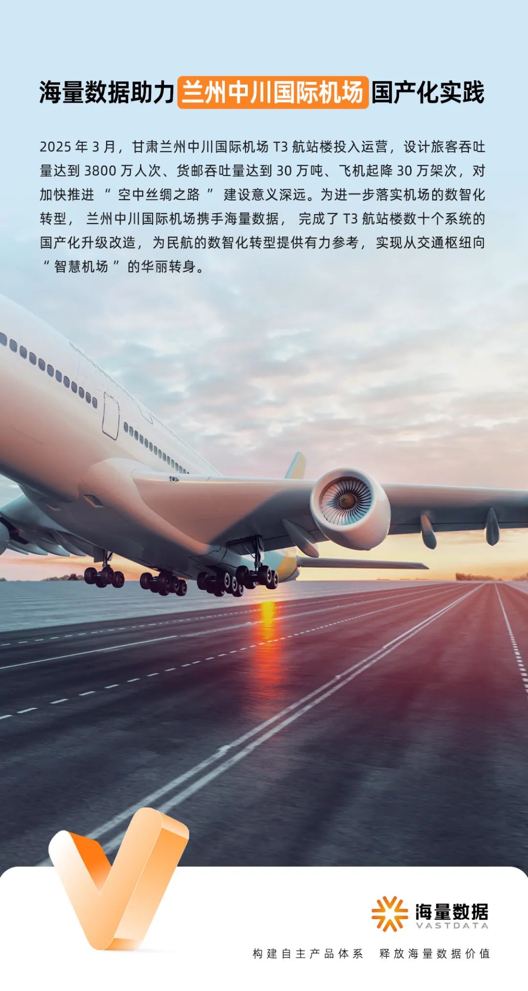 兰州中川国际机场于1970年建成投用,是甘肃省的省会机场。2025年3月,T3航站楼投入运营,设计旅客吞吐量达到3800万人次、货邮吞吐量达到30万吨、飞机起降30万架次。智慧高效、快速通达的出行背后,离不开海量数据库国产化替代的成功实践。