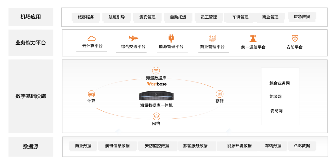 海量数据深度融合兰州中川国际机场的业务场景,基于海量数据库一体机Vastcube G3000以及海量数据库Vastbase G100,打造了软硬协同、全栈自主的一体化解决方案。
