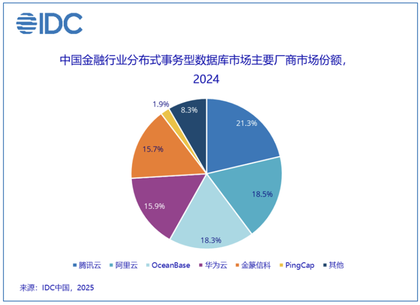 图5:2024中国金融行业分布式事务型数据库市场主要厂商市场份额
