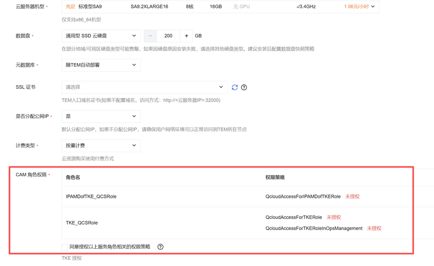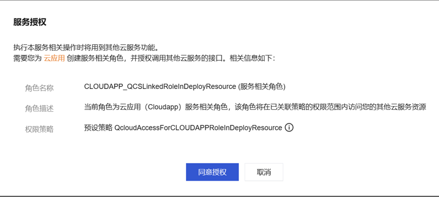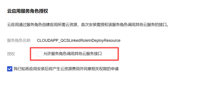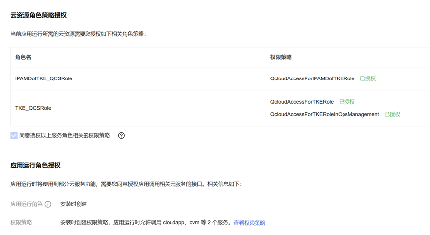 注意:如果是首次安装,需要勾选“允许服务角色调用其他云服务结构”