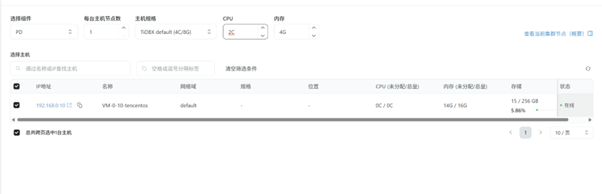 暂时不要选drainer/pump组件,因为这两个组件有问题,创建集群时会卡住,耗时比较久,等不及只能销毁重来。(体验时想着多选一下,结果等的时间比较久,后来问了社区群大佬进行销毁重来了。)
