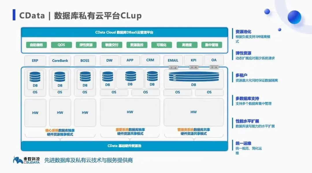 CData 一体机为此而生;我们要做的事情就是将一体机技术普惠到这些数据库上,当这些数据库插上CData这个翅膀后,就变成跟Oracle Exadata 一样的高性能、高可用、易扩展、易管理;CData数据库一体机在给企业用户提供高性能数据库的同时,也降低企业对数据库的运维管理成本。