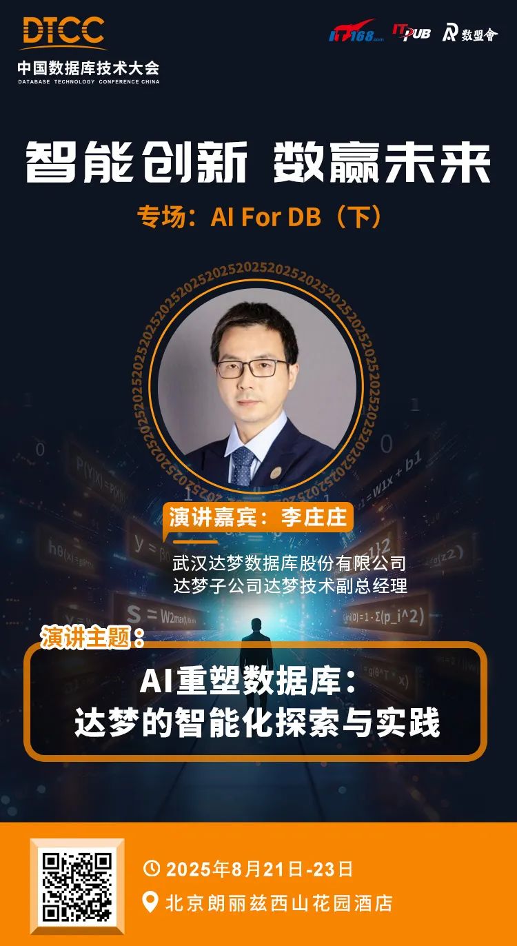大会以“智能创新 数赢未来”为主题,设置2大主会场 + 16+技术专场,不仅涵盖数据库自主、可控架构设计、数据库内核解析、分布式数据库、云原生数据库、实时数仓等当前主流的技术专场,同时,还根据AI应用落地需求,加强设置了AI For DB、Data+AI、向量数据库与RAG检索技术实践等AI应用实践专场。