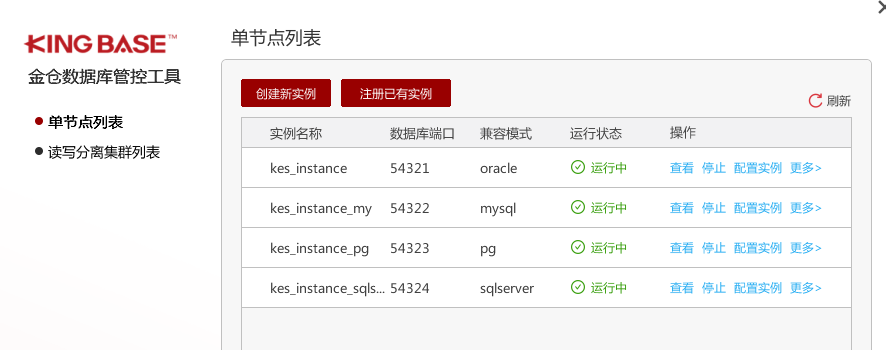 KES V009R001C010 具备 Oracle、MySQL、SQLServer、PostgreSQL 四种兼容模式,强化 SQLServer 能力兼容。在命令行控制台安装完成后,使用 KConsole 工具创建四种兼容模式的实例。