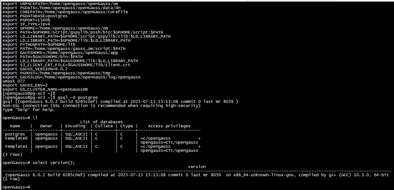 gsql -d postgres列出服务器上所有数据库的名称、所有者、字符集编码以及使用权限。(斜杠和字母l)