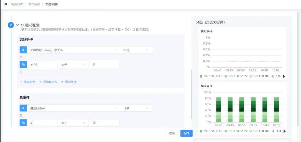 <前缀>_sli_good_events(良好事件数) 根据SLI指标配置的良好事件数的计算公式得出最终的值。 <前缀>_sli_total_events(总事件数) 根据SLI指标配置中的总事件数的计算公式得出最终的值。 <前缀>_sli_current_rate(当前百分比)