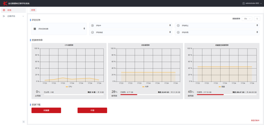 · 下滑至评估系统首页底部「资源采集」,即可获取轻量级采集器。
