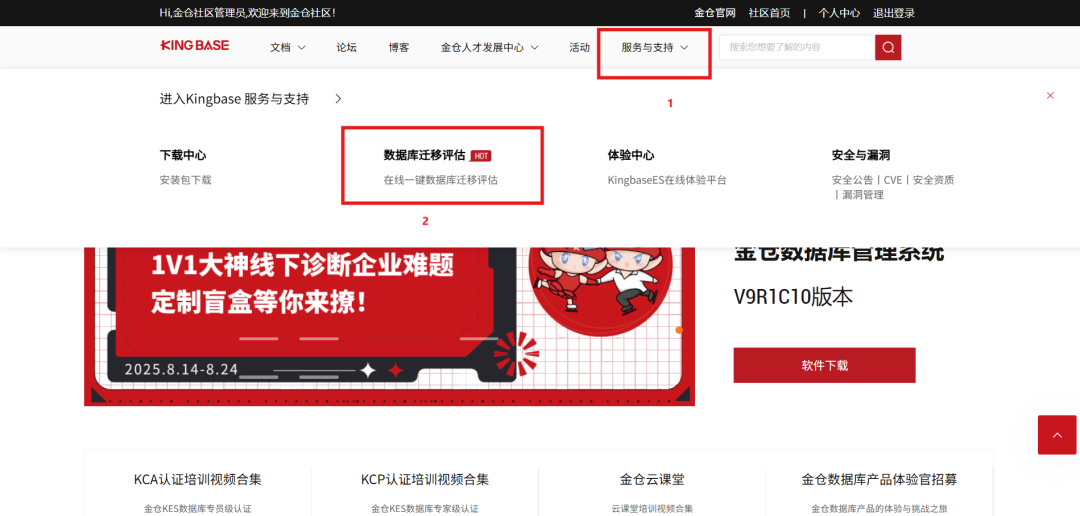 · 点击「服务与支持」→「数据库迁移评估」,跳转进入在线数据库迁移评估系统;