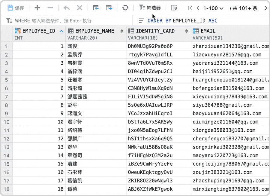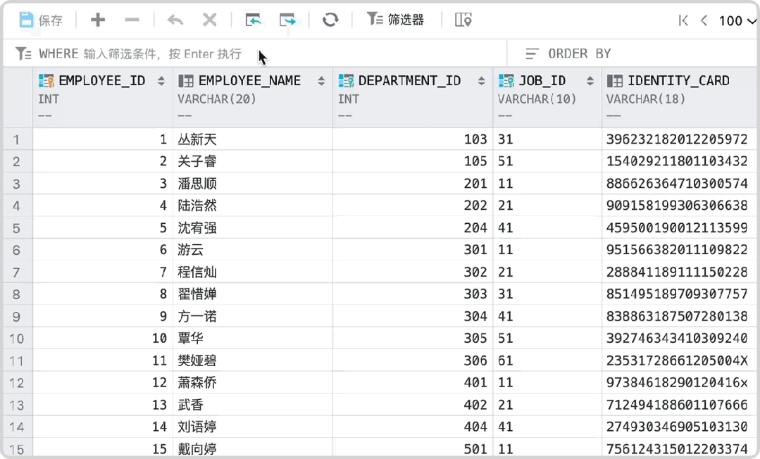 V3.6 之前 SQLark 仅支持通过编写 WHERE 子句实现数据筛选;在 V3.6 中新增数据筛选器功能,用户可以通过直观的可视化界面设置筛选条件。
