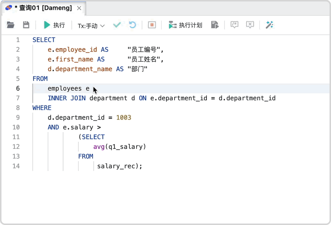 表别名溯源:对于表别名,通过 Ctrl+鼠标左击 可定位至该别名对应的实际表名或其定义语句。