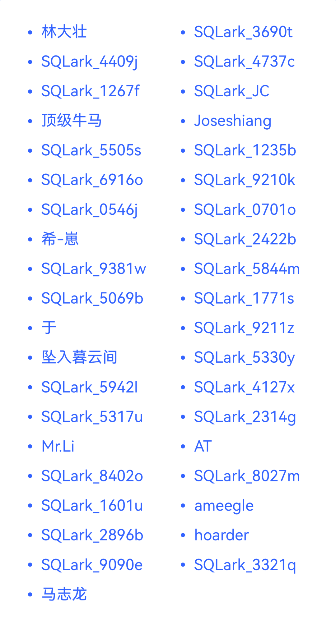 👉以上贡献者 ID,也可在:SQLark 官网 | 最近更新 | V3.6 查看;