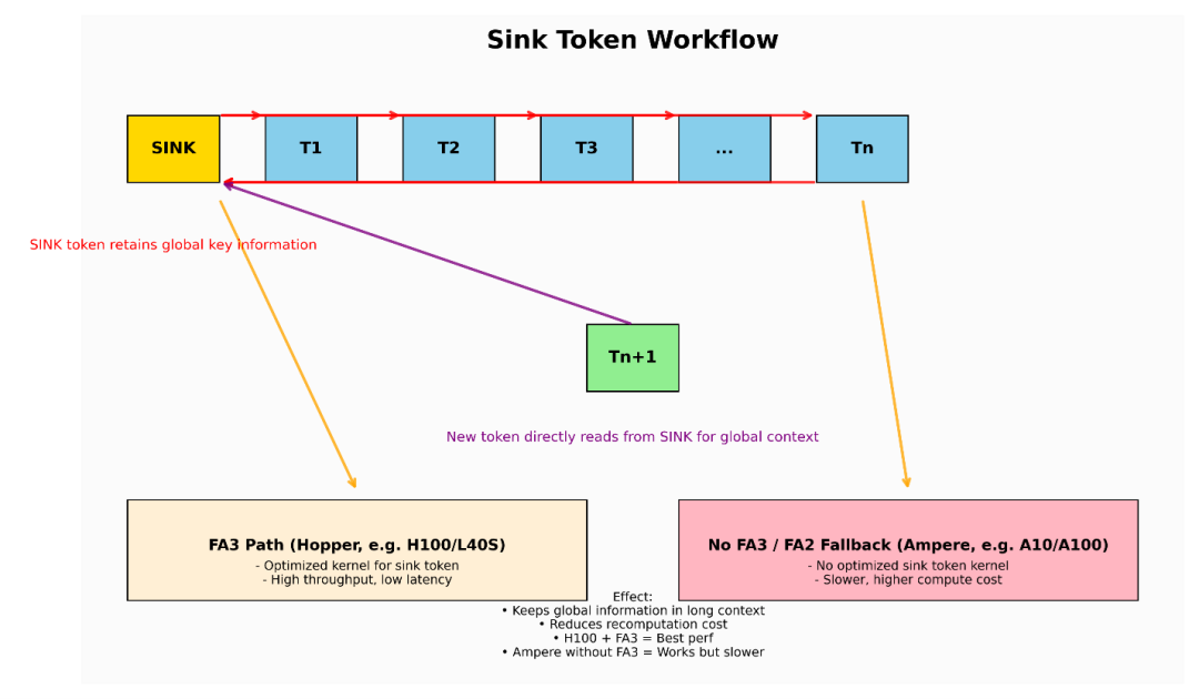 通过将昂贵的上下文重扫描(re-scan)转化为更具成本效益的“全局内存查找”。Sink Token 在超长上下文(≥ 32k tokens)中,显著降低 TTFT(Time To First Token) 和整体吞吐量压力。