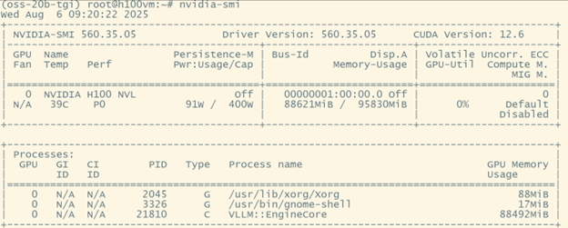 在 NC H100 上,借助 vLLM,我们能够利用 gpt-oss-20b 模型实现出色的推理性能。
