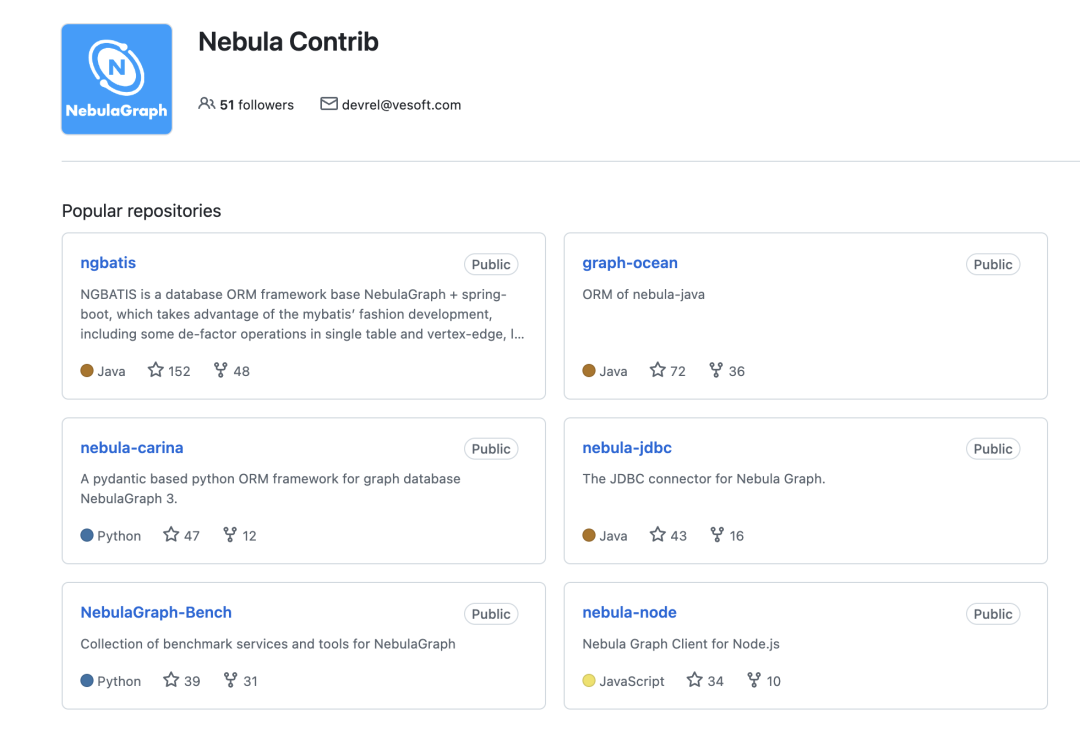 Nebula Contrib 是 NebulaGraph 社区创造力和协作精神的生动体现。从提升开发体验的工具,到探索前沿应用的桥梁,这里的每一个项目都凝聚着社区伙伴的智慧~