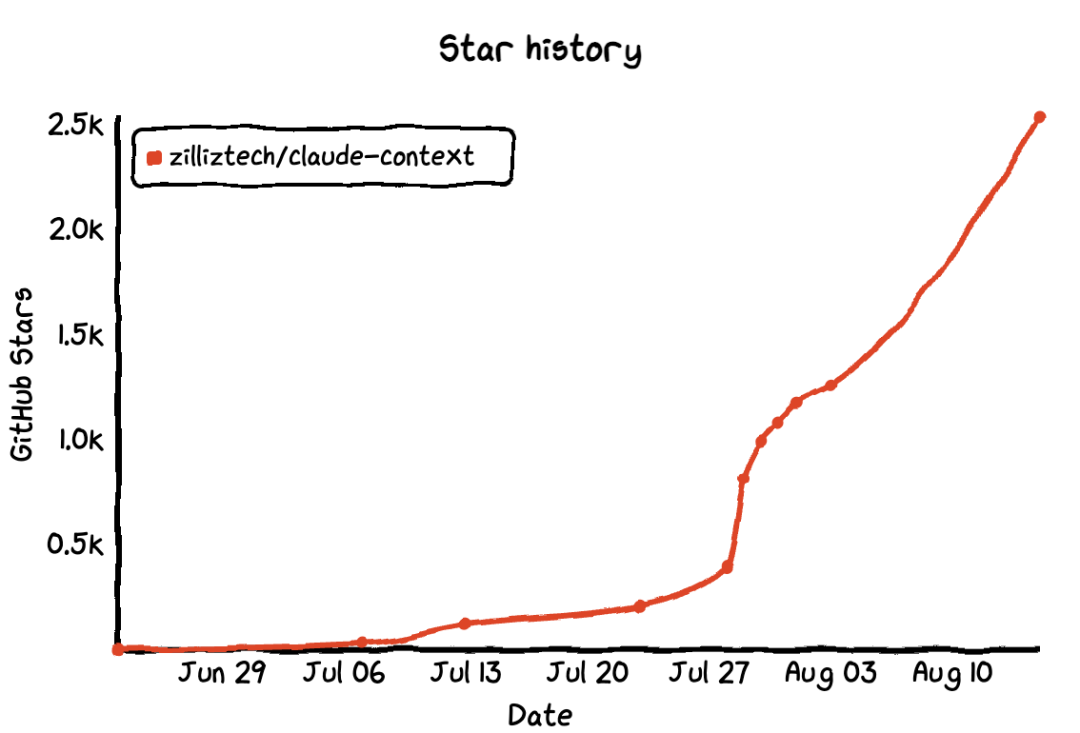 目前 claude-context 已经开源,我们还将其发布到了 npm registry 上,并在GitHub上获得了2.6K star。