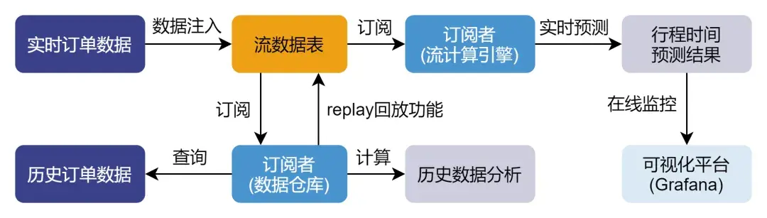 在上一篇文章车联网 | 又快又准的行程时间预测,一个平台搞定?中,我们介绍了如何使用 DolphinDB 精准高效地完成从数据存储到模型预测的全流程。DolphinDB 除了能在离线环境中高效训练机器学习模型,更能在生产环境下实时接入海量订单流数据,完成特征提取与预测,并将结果快速送达前端系统。