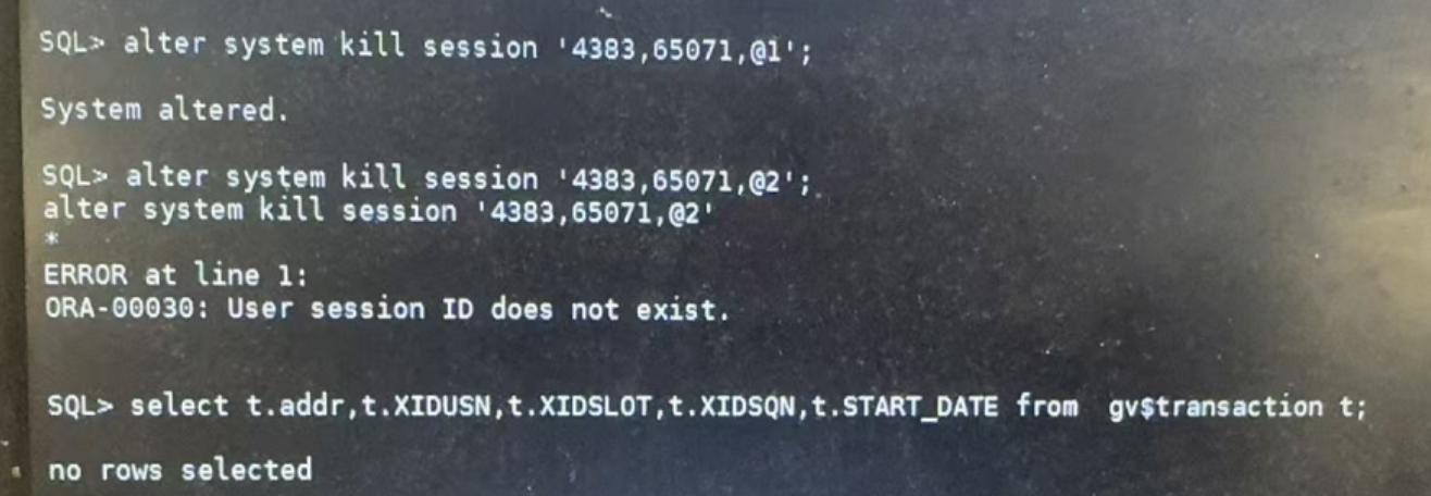 4)找到对应的sid和serial#查杀会话,再次查询事务已消失