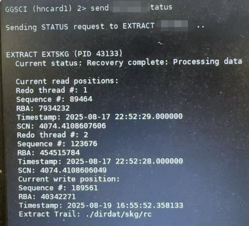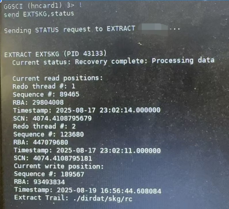 2025-08-17 11:27:20 INFO OGG-00965 Oracle GoldenGate Manager for Oracle, mgr.prm: EXTRACT xx restarted automatically.