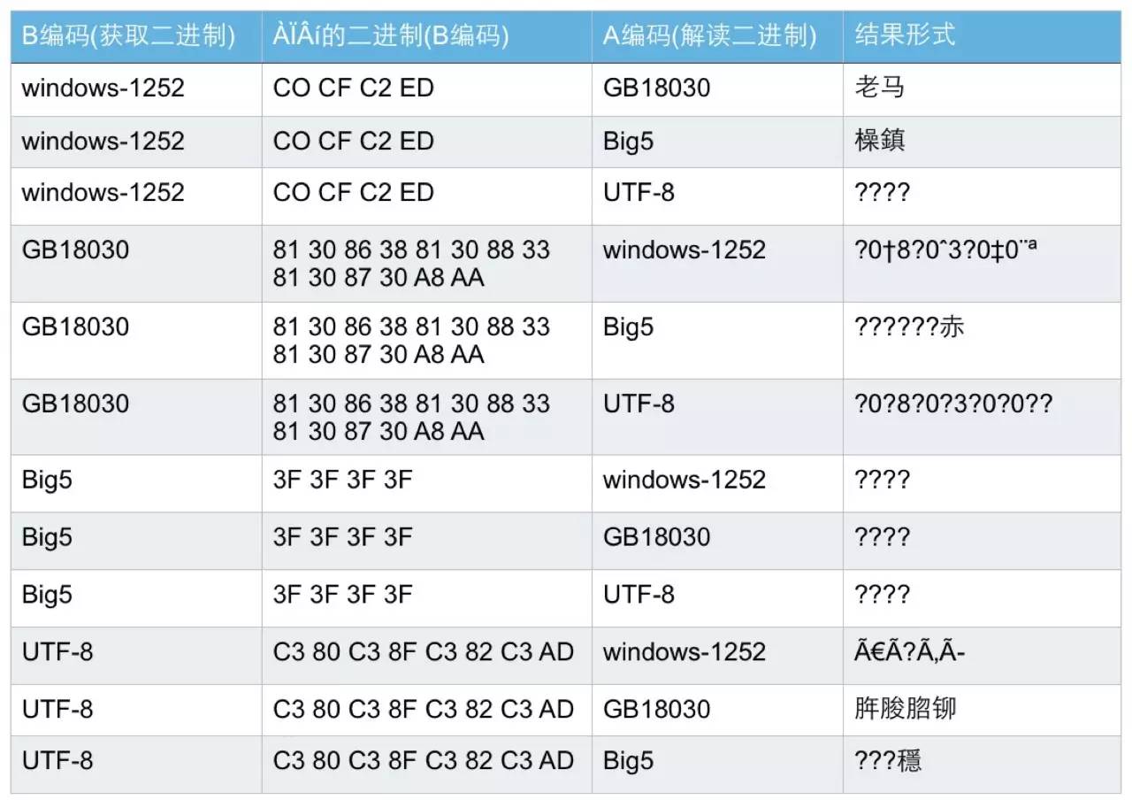 虽然有这么多形式,但我们看到的乱码形式很可能是"ÀÏÂí",因为在例子中UTF-8是编码转换的目标编码格式,既然转换为了UTF-8,一般也是要按UTF-8查看。