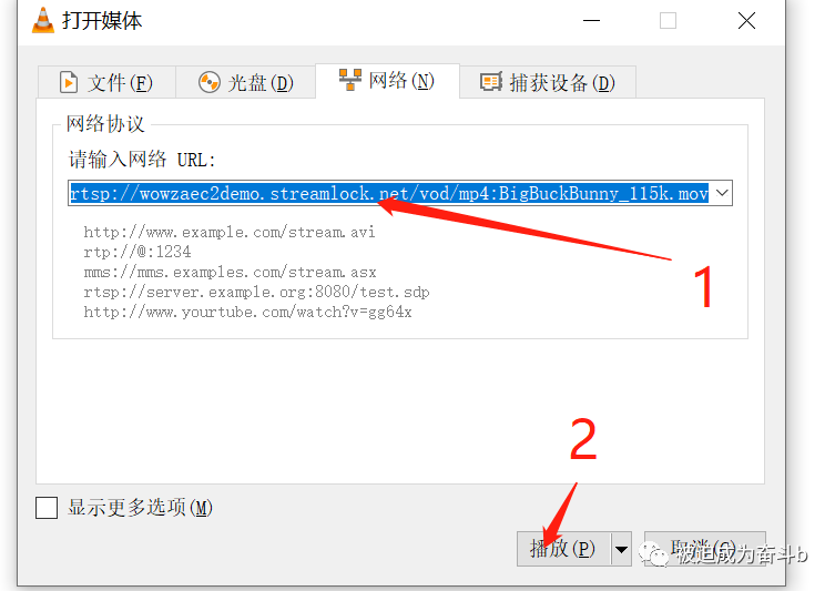地址可以通过下面两种方式验证地址是否可用。我在网上搜索到一个可用的RTSP地址为rtsp://wowzaec2demo.streamlock.net/vod/mp4:BigBuckBunny_115k.mov,广大读者如果身边没有摄像头,暂时可用该地址代替测试。
