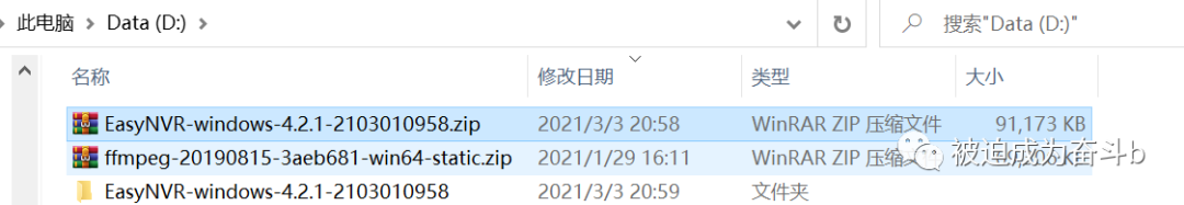 进入到EasyNVR-windows-4.2.1-2103010958目录,找到EasyNVR.exe