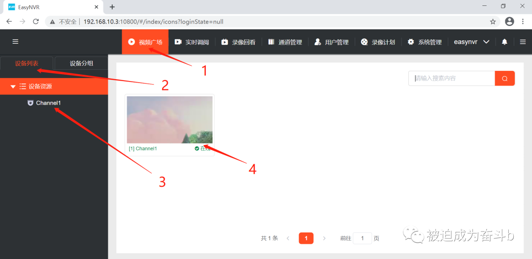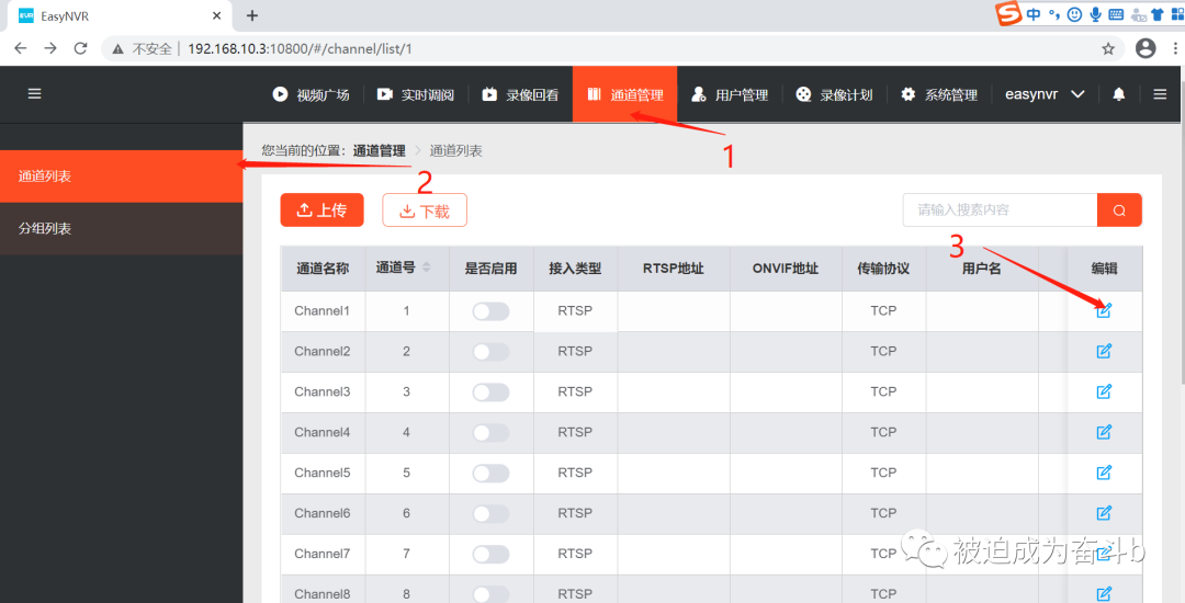 服务地址http://192.168.10.3:10800,使用默认用户名:easynvr