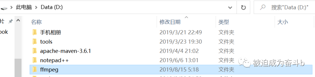 下载链接:https://pan.baidu.com/s/1xaL-EB1KbmiYCC-nicE6_g,提取码:dcpv 。下载至本地解压,如有需要修改解压后的文件名,笔者这里改为ffmpeg