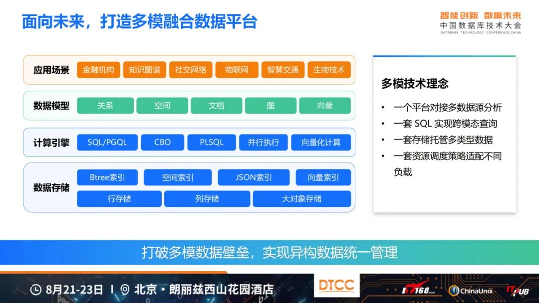 随着大模型浪潮从文本向多模态发展,数据管理正面临多方面的挑战,如海量数据管理、大数据即时性、多模态数据管理等,孟凡彬现场分享了YashanDB的前瞻布局——打造多模融合数据平台。YashanDB创新性地在一套统一架构与存储引擎中,高效原生支持关系型、空间、文档、图、向量等多种数据模型,并通过集成行列混合存储与向量化计算引擎,为金融交易、物联网时序数据、AI训练等场景提供坚实、可靠、多模态协同的数据底座。