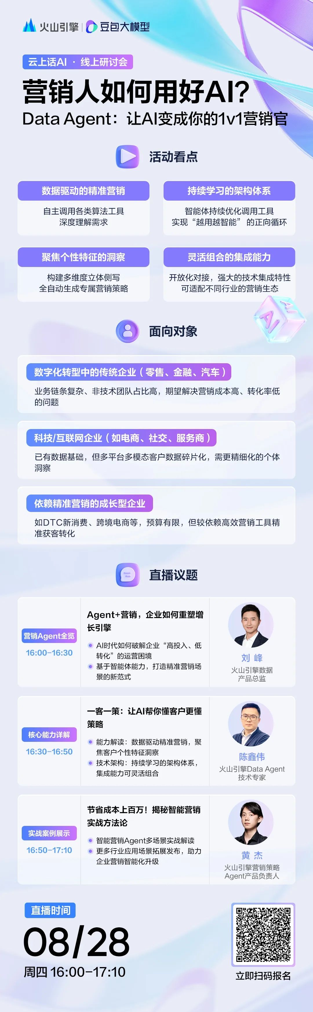 8月28日,我们将举办线上直播,深入介绍Data Agent - 智能营销 Agent 的多项核心能力,带你探索智能营销的无限可能。