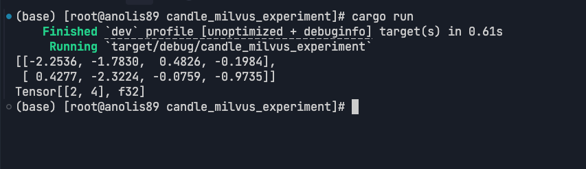 mkdir candle_milvus_experiment#[cfg(feature = "mkl")]extern crate intel_mkl_src;#[cfg(feature = "accelerate")]extern crate accelerate_src;use candle_transformers::models::jina_bert::{BertModel, Config};use anyhow::Error as E;use candle::{DType, Device, Module, Tensor};use candle_nn::VarBuilder;use clap::Parser;use std::path::PathBuf;use std::fs;use tokio;use reqwest;use serde_json::json;#[derive(Parser, Debug)]#[command(author, version, about, long_about = None)]struct Args {/// Run on CPU rather than on GPU.#[arg(long)]cpu: bool,/// Enable tracing (generates a trace-timestamp.json file).#[arg(long)]tracing: bool,/// When set, compute embeddings for this prompt.#[arg(long)]prompt: Option<String>,/// The number of times to run the prompt.#[arg(long, default_value = "1")]n: usize,/// L2 normalization for embeddings.#[arg(long, default_value = "true")]normalize_embeddings: bool,/// Path to tokenizer file#[arg(long)]tokenizer: Option<String>,/// Model name or path#[arg(long)]model: Option<String>,/// Path to model file#[arg(long)]model_file: Option<String>,/// Use domestic proxy for model download#[arg(long)]use_proxy: bool,}impl Args {async fn build_model_and_tokenizer(&self) -> anyhow::Result<(BertModel, tokenizers::Tokenizer)> {// 使用本地下载的模型文件let model_dir = "./models";let model_file = match &self.model_file {Some(model_file) => PathBuf::from(model_file),None => PathBuf::from(format!("{}/model.safetensors", model_dir))};let tokenizer_file = match &self.tokenizer {Some(file) => PathBuf::from(file),None => PathBuf::from(format!("{}/tokenizer.json", model_dir))};println!("使用本地模型文件: {:?}", model_file);println!("使用本地Tokenizer文件: {:?}", tokenizer_file);let device = if self.cpu {candle::Device::Cpu} else {candle::Device::cuda_if_available(0)?};let tokenizer = tokenizers::Tokenizer::from_file(tokenizer_file).map_err(E::msg)?;let config = Config::v2_base();println!("正在加载模型权重...");let start_time = std::time::Instant::now();let vb = unsafe { VarBuilder::from_mmaped_safetensors(&[model_file], DType::F32, &device)? };let load_time = start_time.elapsed();println!("✅ 模型权重加载完成! 耗时: {:.2}秒", load_time.as_secs_f64());println!("正在构建模型...");let start_time = std::time::Instant::now();let model = BertModel::new(vb, &config)?;let build_time = start_time.elapsed();println!("✅ 模型构建完成! 耗时: {:.2}秒", build_time.as_secs_f64());println!("模型加载成功!嵌入维度: 768");Ok((model, tokenizer))}}async fn get_embedding_with_candle(model: &BertModel,tokenizer: &mut tokenizers::Tokenizer,text: &str,normalize: bool,) -> anyhow::Result<Vec<f32>> {let device = &model.device;let tokenizer = tokenizer.with_padding(None).with_truncation(None).map_err(E::msg)?;let tokens = tokenizer.encode(text, true).map_err(E::msg)?.get_ids().to_vec();let token_ids = Tensor::new(&tokens[..], device)?.unsqueeze(0)?;let embeddings = model.forward(&token_ids)?;// 平均池化let (_n_sentence, n_tokens, _hidden_size) = embeddings.dims3()?;let embeddings = (embeddings.sum(1)? (n_tokens as f64))?;// L2归一化(如果需要)let embeddings = if normalize {normalize_l2(&embeddings)?} else {embeddings};// 转换为Vec<f32>let embedding_vec = embeddings.flatten_all()?.to_vec1::<f32>()?;Ok(embedding_vec)}pub fn normalize_l2(v: &Tensor) -> candle::Result<Tensor> {v.broadcast_div(&v.sqr()?.sum_keepdim(1)?.sqrt()?)}// Milvus客户端struct MilvusClient {client: reqwest::Client,base_url: String,}impl MilvusClient {async fn new(base_url: &str) -> anyhow::Result<Self> {let client = reqwest::Client::new();Ok(Self {client,base_url: base_url.to_string(),})}async fn create_collection(&self, collection_name: &str, dim: usize) -> anyhow::Result<()> {// 首先检查集合是否已存在if self.collection_exists(collection_name).await? {println!("⚠️ 集合 '{}' 已存在,跳过创建", collection_name);return Ok(());}let url = format!("{}/v1/vector/collections/create", self.base_url);let payload = json!({"dbName": "default","collectionName": collection_name,"dimension": dim,"metricType": "L2","primaryField": "id","vectorField": "vector","primaryFieldType": "Int64","autoId": false});println!("正在创建集合 '{}'...", collection_name);println!("API URL: {}", url);println!("请求负载: {}", serde_json::to_string_pretty(&payload)?);let response = self.client.post(&url).header("Content-Type", "application/json").json(&payload).send().await?;let status = response.status();let response_text = response.text().await?;println!("响应状态: {}", status);println!("响应内容: {}", response_text);if status.is_success() {// 创建索引self.create_index(collection_name).await?;// 加载集合self.load_collection(collection_name).await?;Ok(())} else {if response_text.contains("already exists") || response_text.contains("exist") {println!("⚠️ 集合已存在,跳过创建");Ok(())} else {Err(anyhow::anyhow!("创建集合失败: 状态码 {}, 响应: {}", status, response_text))}}}async fn drop_collection(&self, collection_name: &str) -> anyhow::Result<()> {let url = format!("{}/v1/vector/collections/drop", self.base_url);let payload = json!({"collectionName": collection_name});println!("正在删除集合 '{}'...", collection_name);let response = self.client.post(&url).header("Content-Type", "application/json").json(&payload).send().await?;let status = response.status();let response_text = response.text().await?;println!("删除集合响应状态: {}", status);println!("删除集合响应内容: {}", response_text);if status.is_success() {println!("✅ 集合删除成功");Ok(())} else {println!("⚠️ 集合删除失败: {}", response_text);Ok(()) // 删除失败不影响整体流程}}async fn collection_exists(&self, collection_name: &str) -> anyhow::Result<bool> {let url = format!("{}/v1/vector/collections", self.base_url);let response = self.client.get(&url).send().await?;if response.status().is_success() {let response_text = response.tex
