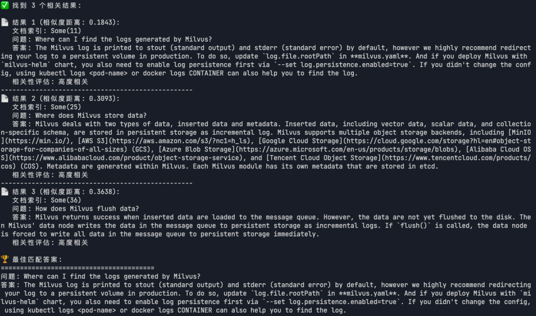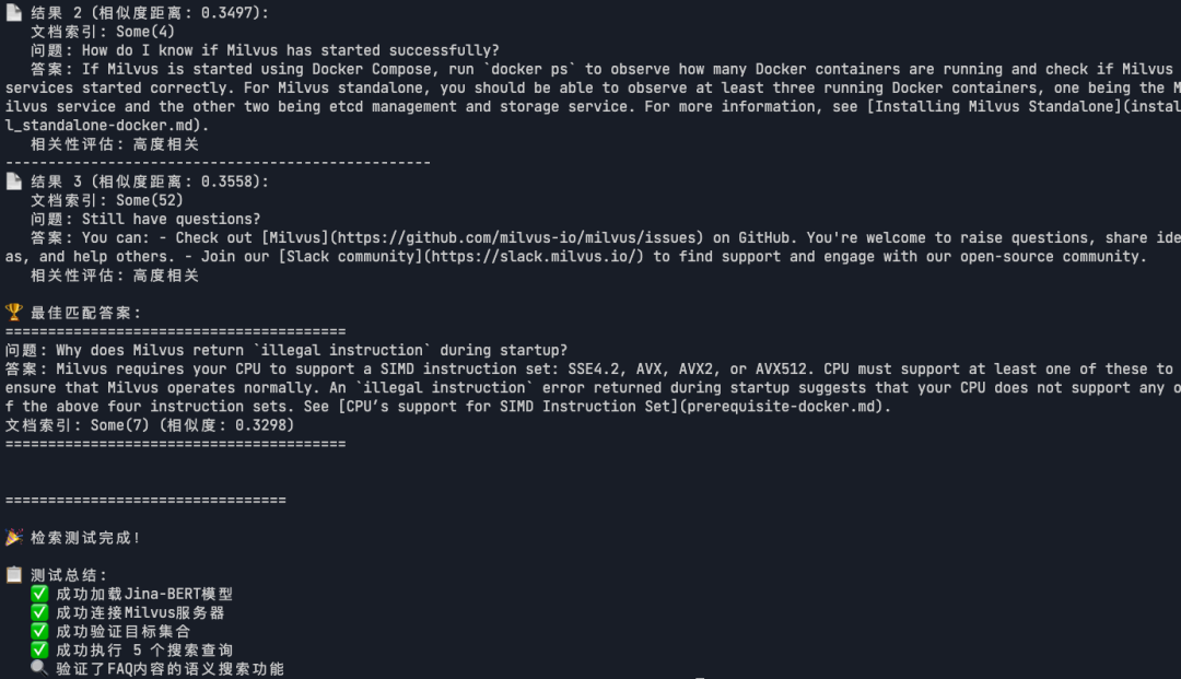 说明:基于语义相似度搜索 ,系统能找到最相关的FAQ答案。