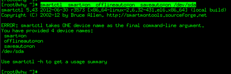 smartctl –smart=on –offlineauto=on –saveauto=on /dev/sda
