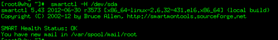 使用 smartctl -H命令可以快速查看硬盘的“通过/失败”健康状态。