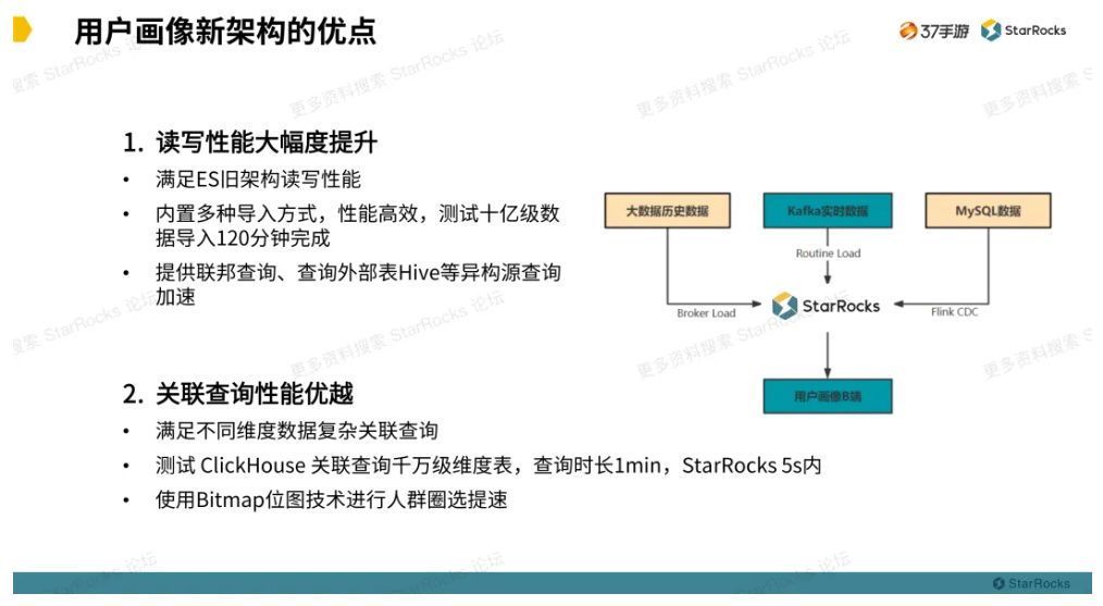 通过引入StarRocks,37手游建立了统一的数据分析平台,能够同时处理结构化和非结构化的游戏数据。在用户画像构建方面,StarRocks将结构化的用户基础信息与非结构化的行为日志进行关联分析,生成更加全面和精准的用户特征。这种混合数据分析能力显著提升了游戏运营团队的决策效率,查询响应时间从分钟级别降低到秒级别,为业务人员提供了更好的数据体验。