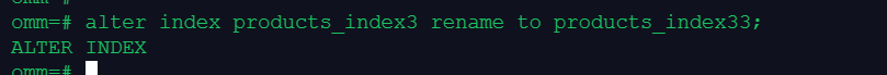 2.设置索引1不可用,修改索引2的表空间,重命名索引3alter index products_index1 unusable;
