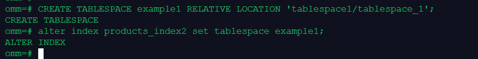 CREATE TABLESPACE example0 RELATIVE LOCATION 'tablespace1/tablespace_0';