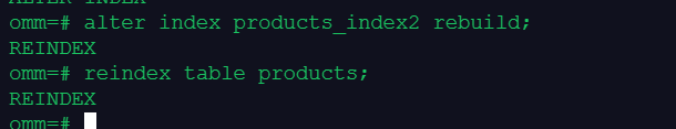 3.重建索引2和products的所有索引alter index products_index2 rebuild;reindex table products;