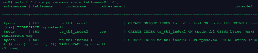 4.使用\d+和系统视图pg_indexes查看索引信息